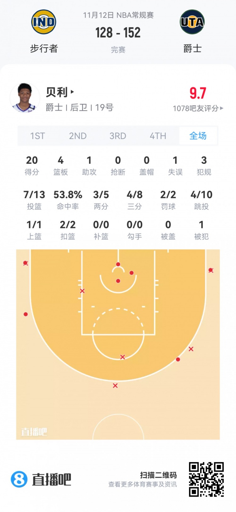 [Tân binh] Bailey ghi 20 điểm cao nhất trong sự nghiệp, Edgecombe ghi 6 điểm sau 11 cú sút, Jamin ghi 16 điểm, 4 rebound và 5 kiến tạo.