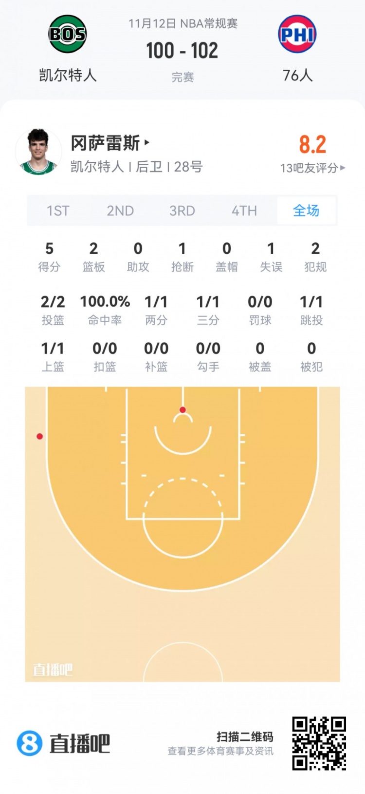 lượt chọn số 28 của Celtics Hugo Gonzalez Chơi trong 5,8 phút