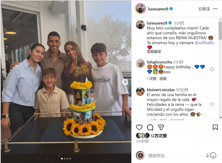 Sofia kỷ niệm sinh nhật lần thứ 36 của mình. Suarez đã đăng một bức ảnh chụp gia đình tổ chức sinh nhật cho cô lên mạng xã hội với dòng chữ: "Chúc mừng sinh nhật mẹ của các con! Mỗi lần mẹ tổ chức sinh nhật đầu tiên, chúng tôi càng tự hào về mẹ hơn, nữ hoàng của chúng con! 🎂Yêu mẹ hôm nay và mãi mãi."